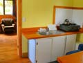 The concept of this lodge is similar to a motel unit. It is totally self-contained. It is more private and quiet than in other backpackers and there is no common room with TV, but if you like to meet people there are many ways: you can go and visit them in their lodges or invite them into yours, meet at the BBQ area, watch the sunset together from the verandah of the main lodge or come for the odd social night, or concert to our house. If you prefer the comfort of a house with TV, power sockets, a common area and a larger, better equipped kitchen you should choose our holiday house.